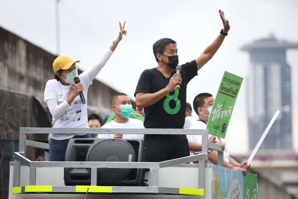 นายชัชชาติ สิทธิพันธุ์ ผู้สมัครชิงตำแหน่งผู้ว่าฯ กทม. เบอร์ 8 พร้อมกับนางสาวเกษรา ธัญลักษณ์ภาคย์ หัวหน้าทีมนโยบายเศรษฐกิจ “เพื่อนชัชชาติ” ปล่อยขบวนหาเสียงด้วยรถยนต์ไฟฟ้า หรือ EV ตามแนวคิด “หาเสียงแบบรักเมือง” ขบวนหาเสียงขับไปตามเส้นทาง ถ.จันทร์, ถ.พระราม 3, ถ.เจริญราษฎร์ และ ถ.สาธุประดิษฐ์ ระหว่างเส้นทาง นายชัชชาติ ได้แวะหาเสียงที่ตลาดรุ่งเจริญ เขตยานนาวา ตลอดเส้นทางมีผู้ค้าและประชาชนให้การต้อนรับอย่างอบอุ่น