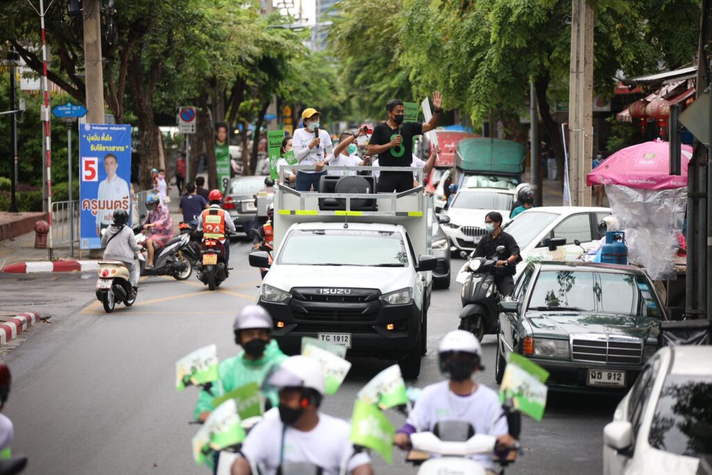 นายชัชชาติ สิทธิพันธุ์ ผู้สมัครชิงตำแหน่งผู้ว่าฯ กทม. เบอร์ 8 พร้อมกับนางสาวเกษรา ธัญลักษณ์ภาคย์ หัวหน้าทีมนโยบายเศรษฐกิจ “เพื่อนชัชชาติ” ปล่อยขบวนหาเสียงด้วยรถยนต์ไฟฟ้า หรือ EV ตามแนวคิด “หาเสียงแบบรักเมือง” ขบวนหาเสียงขับไปตามเส้นทาง ถ.จันทร์, ถ.พระราม 3, ถ.เจริญราษฎร์ และ ถ.สาธุประดิษฐ์ ระหว่างเส้นทาง นายชัชชาติ ได้แวะหาเสียงที่ตลาดรุ่งเจริญ เขตยานนาวา ตลอดเส้นทางมีผู้ค้าและประชาชนให้การต้อนรับอย่างอบอุ่น