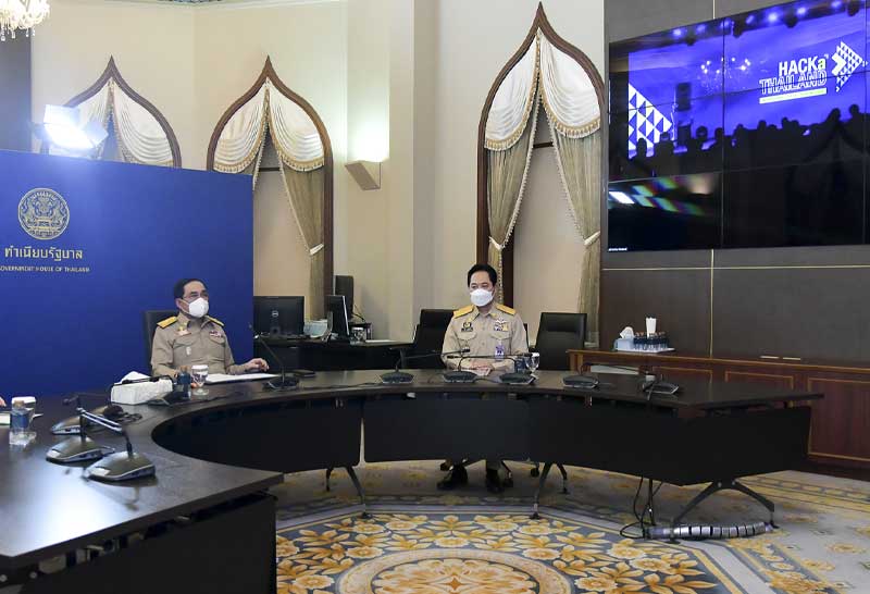 พล.อ.ประยุทธ์ จันทร์โอชา นายกรัฐมนตรี เป็นประธานในพิธีเปิดและกล่าวปาฐกถาพิเศษ “โครงการเผยแพร่และกระตุ้นการรับรู้พร้อมยกระดับทักษะด้านเทคโนโลยีดิจิทัลเพื่อรองรับการปรับเปลี่ยนโครงสร้างเศรษฐกิจยุค New Normal หลังวิกฤตโควิด-19 : HACKaTHAILAND” ผ่านระบบออนไลน์ ในหัวข้อ “New Normal : Digital Possibilities”พร้อมแสดงความยินดีกับผู้ได้รับรางวัล Prime Minister’s Digital Awards 2021 พร้อมกล่าวว่า เทคโนโลยีดิจิทัลเป็นหนึ่งในเครื่องมือสำคัญที่รัฐบาลนำมาใช้ขับเคลื่อนยุทธศาสตร์ชาติ ซึ่งได้ติดตามสถานการณ์ความก้าวหน้ามาโดยตลอด