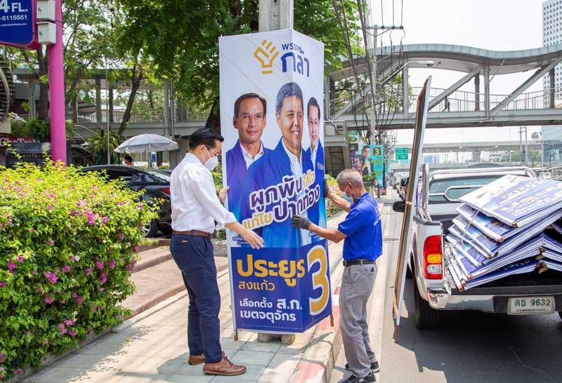นายอรรถวิชช์ สุวรรณภักดี เลขาธิการพรรคกล้า ลงพื้นที่นำทีมแก้ไขป้ายผู้สมัคร ส.ก. บริเวณแยกรัชโยธิน โดยปรับป้ายหาเสียงขนาดปกติที่ขวางทางเท้า หักตรงกลางทำเป็นเหลี่ยมเข้ามุม เพิ่มพื้นที่ทางเดินได้สะดวกขึ้น พร้อมกระจายทีมงานตรวจป้ายของพรรคกล้า จุดไหนพื้นที่แคบขวางทางเดิน ให้ติดป้ายเข้ามุมแทน