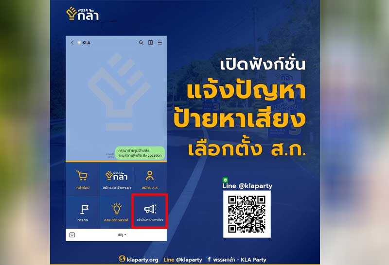 อย่างไรก็ตาม ผู้สมัคร ส.ก.พรรคกล้าทั้ง 12 คน 12 เขตที่ลงสมัครรับเลือกตั้ง ถ้าป้ายไหนขวางทางเท้า เราพร้อมหักให้เป็นป้ายให้เข้ามุม เพิ่มพื้นที่ทางเดิน ป้ายพื้นที่ไหนมีปัญหา แจ้งมาได้ที่ไลน์ @klaparty เราเปิดฟังก์ชันแจ้งปัญหาป้ายหาเสียง พร้อมแก้ไขให้ทันที
