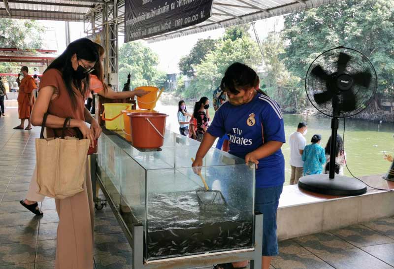 ประชาชนสวมเสื้อลายดอกทำบุญสงกรานต์
