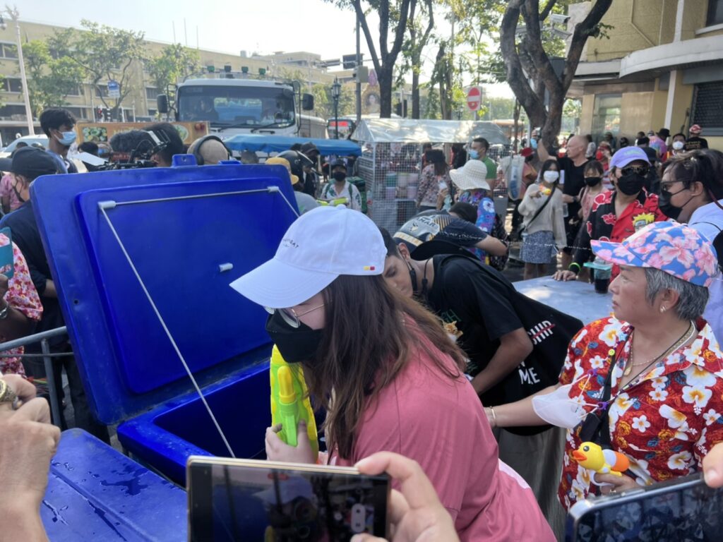 กลุ่มทะลุฟ้า จัดกิจกรรมสงกรานต์มหาซน เดินขบวนมากจากแยกผ่านฟ้าลีลาศ แห่รอบอนุสาวรีย์ประชาธิปไตย ขณะ เจ้าหน้าที่ตรึงกำลังเข้ม