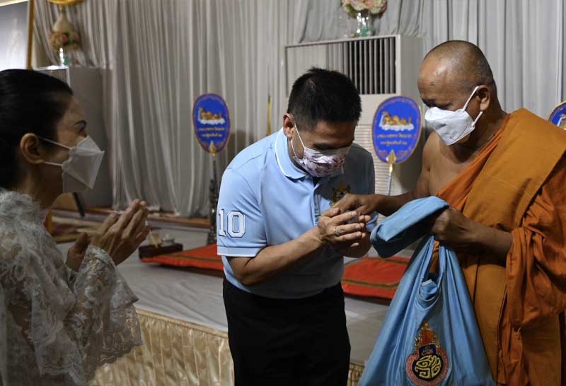 จากนั้นได้เดินทางมายัง ศาลาสมเด็จพระนเรศวรมหาราช วัดป่าเลไลย์ เพื่อบำเพ็ญกุศลให้แก่นายบรรหาร ศิลปอาชา โดยมีนางสาวกัญจนา ศิลปอาชาหัวหน้าพรรคชาติไทยพัฒนา และคุณหญิงแจ่มใส ศิลปอาชา ร่วมทำพิธีบำเพ็ญกุศลครั้งนี้ด้วย