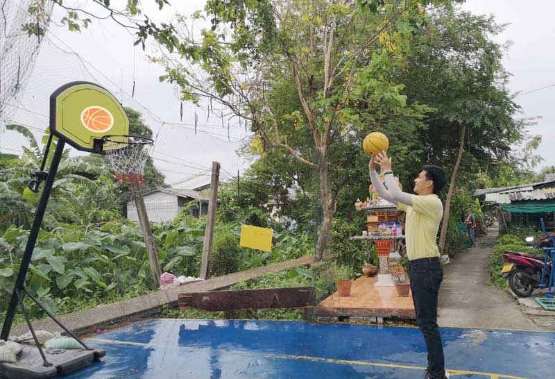 ตอนก่อนลงสมัคร ส.ก. ตนมาเจอเป็นพื้นที่รกร้าง จึงคิดว่าน่าจะพัฒนาให้เกิดประโยชน์ได้ เลยปรึกษากับทีมงานแล้วก็ชุมชน จนได้ข้อสรุปว่าทำเป็นสนามบาสขนาดเล็ก เพื่อเป็นโมเดล เพิ่มพื้นที่สร้างสรรค์ในชุมชน ซึ่งพอทำเสร็จแล้วชุมชนชอบมาก เด็กก็มาใช้งาน ผู้ใหญ่ก็มาใช้งานได้ จากพื้นที่ไร้ประโยชน์กลับมามีชีวิตชีวาอีกครั้ง