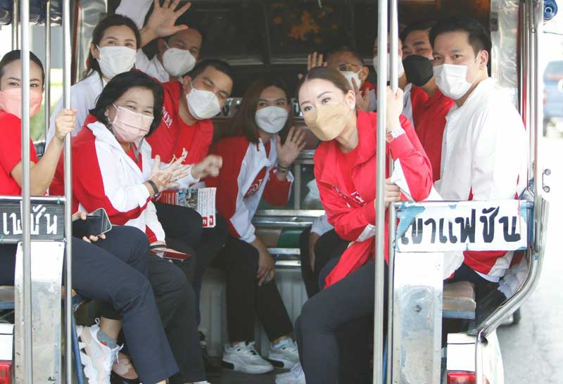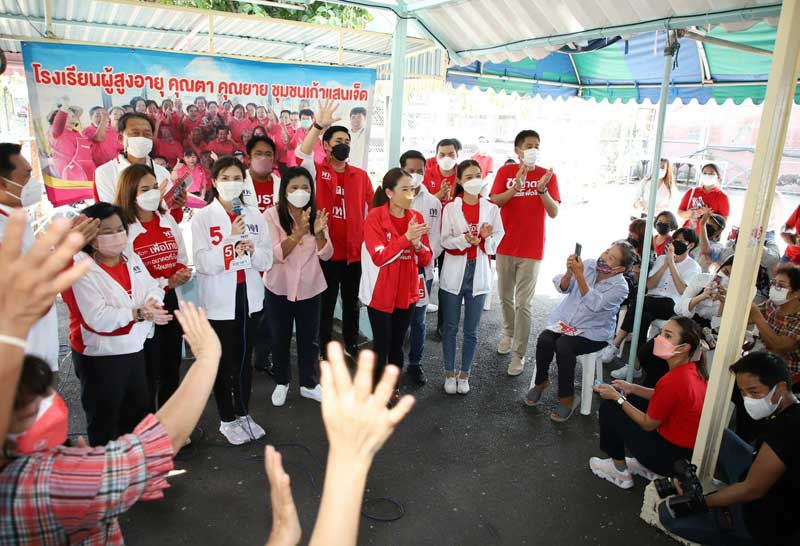 ซึ่งได้รับเสียงตอบรับเป็นอย่างดี มีทั้งการมอบดอกไม้และขอถ่ายรูป พร้อมกับให้กำลังใจ รอให้มาเป็นรัฐบาล ตลอดเส้นทาง จากนั้นเดินทางต่อมาที่หมู่บ้านเก้าแสนด้วยรถสองแถวประจำทาง ทะเบียน 15-6038 เพื่อรณรงค์หาเสียงเคาะประตูตามบ้านมีรั้ว เชิญชวนออกมาใช้สิทธิ์เลือกตั้ง ซึ่งก็ยังได้รับเสียงตอบรับที่ดี