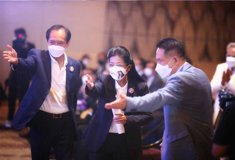 บรรยากาศพรรคไทยสร้างไทย นำโดย คุณหญิงสุดารัตน์ เกยุราพันธุ์ ประธานพรรคไทยสร้างไทย พร้อม น.ต.ศิธา ธิวารี ผู้สมัครผู้ว่าฯกทม.พรรคไทยสร้างไทย นายโภคิน พลกุล คณะกรรมการขับเคลื่อนประเทศ พร้อมนักธุรกิจที่มาร่วมงานเปิดตัว นายสุพันธ์ มงคลสุธี อดีตประธานสภาอุตสาหกรรมแห่งประเทศไทย เป็นหัวหน้าทีมเศรษฐกิจ ที่ โรงแรมสยามเคมปินสกี้