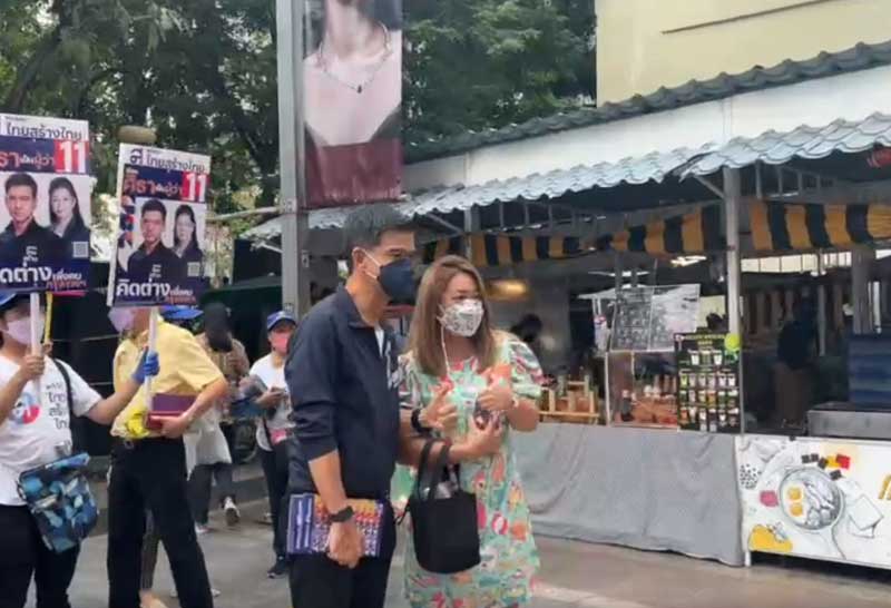 บรรยากาศการลงพื้นที่หาเสียงของน.ต.ศิธา ทิวารี ผู้สมัครผู้ว่าฯ กทม. หมายเลข 11 พรรคไทยสร้างไทย พร้อมนายสมศักดิ์ รัตนกังวานวงศ์ ผู้สมัคร ส.ก. เขตบางรัก หมายเลข 6 ย่านมเหสักข์ ที่ถนนสีลม โดยเฉพาะซอยมเหสักข์ที่เป็นแหล่งรวมร้านขายอัญมณี โดยได้พบกับนายกสมาคมผู้ค้าอัญมณี ที่สะท้อนปัญหาและความต้องการของผู้ค้า