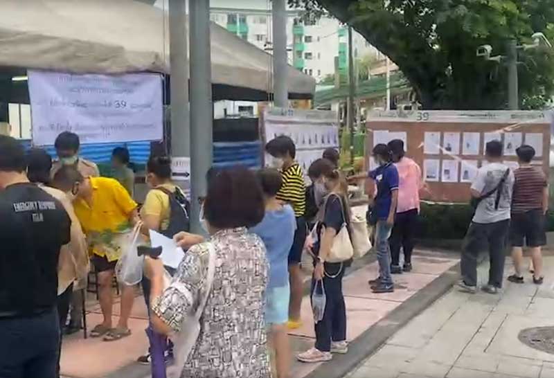 ประชาชนออกมาใช้สิทธิ์ เลือกตั้วผู้ว่า กทม.คึกคัก หน่วยเลือกตั้ง 38-39 เขตบางกะปิ มารอตั้งแต่ยังไม่เปิดหีบ