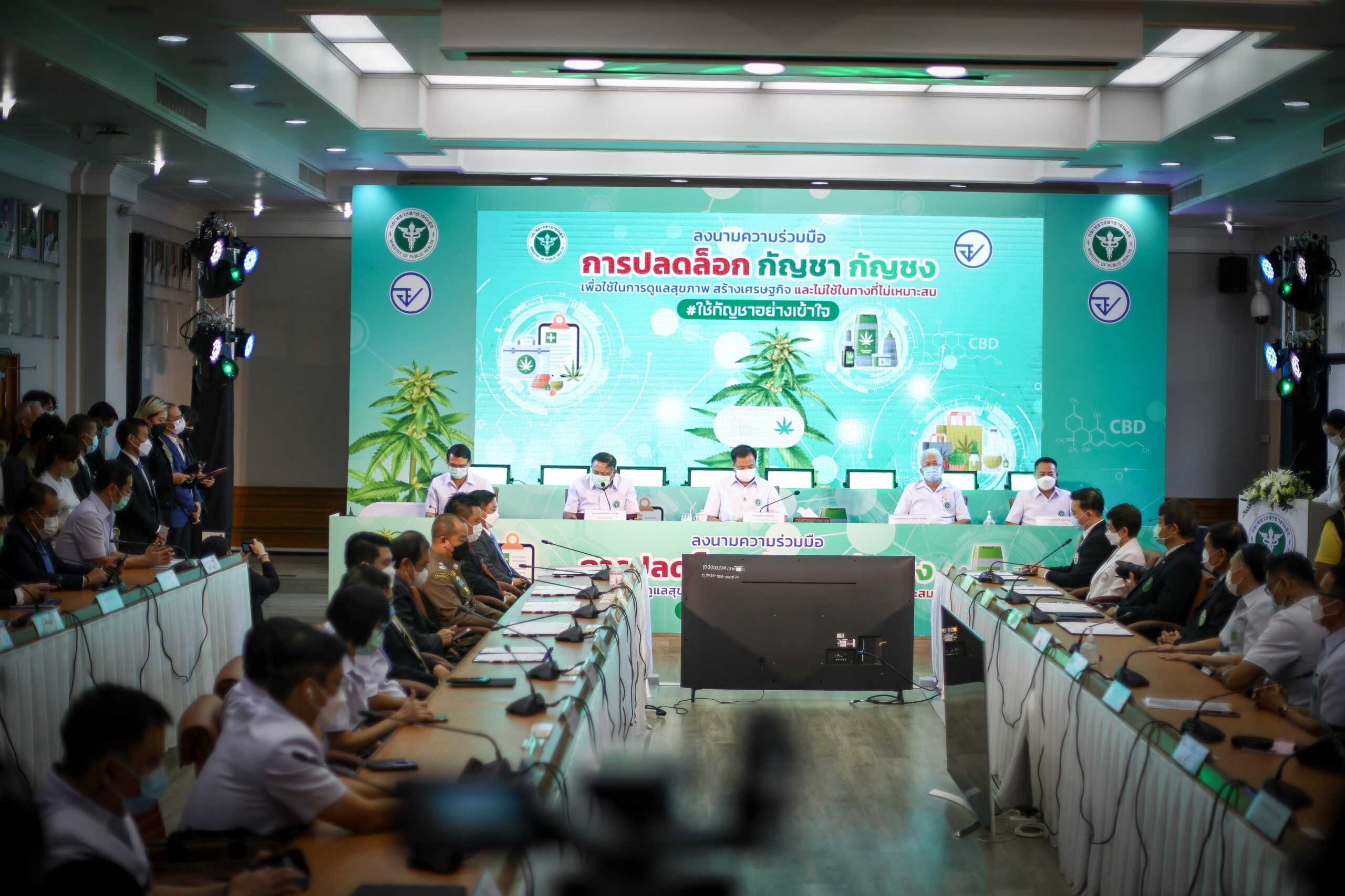 นายอนุทิน ชาญวีรกูล รองนายกรัฐมนตรี และรัฐมนตรีว่าการกระทรวงสาธารณสุข พร้อมด้วย นพ.เกียรติภูมิ วงศ์รจิต ปลัดกระทรวงสาธารณสุข และผู้บริหารกระทรวงสาธารณสุข ร่วมกันแสดงจุดยืน “การปลดล็อกกัญชา กัญชง เพื่อใช้ในการดูแลสุขภาพ สร้างเศรษฐกิจ และไม่ใช้ในทางที่ไม่เหมาะสม” พร้อมร่วมกับหลายหน่วยงาน ลงนามบันทึกข้อตกลงความร่วมมือว่าด้วยการส่งเสริมการใช้กัญชา กัญชง ดูแลสุขภาพ สร้างเศรษฐกิจและไม่ใช้ในทางที่ไม่เหมาะสม