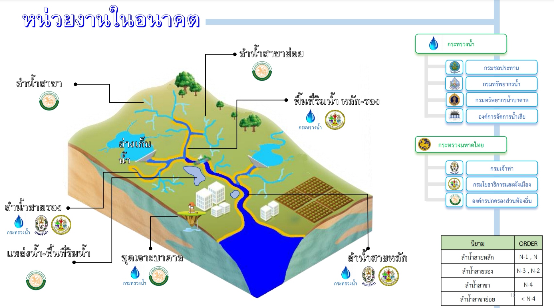 ทั้งนี้ หน่วยงานรัฐยังเน้นแก้ปัญหาด้วยการลงทุนก่อสร้าง และไม่ให้ความสำคัญกับการจัดการด้านความต้องการ พร้อมเสนอ การออกแบบ Roadmap การพัฒนานวัตกรรมเชิงระบบเพื่อการบริหารจัดการน้ำ ที่ประชุมจึงเห็นชอบหลักการ ในการเสริมสร้างความเข้มแข็งให้กับ สทนช. ให้สามารถขับเคลื่อนภารกิจ เพื่อนำไปสู่การพัฒนา เป็นการจัดตั้ง “กระทรวง” ในอนาคตต่อไป โดยขยายบทบาทให้ครอบคลุมทั้งมิติอุปสงค์และอุปทาน