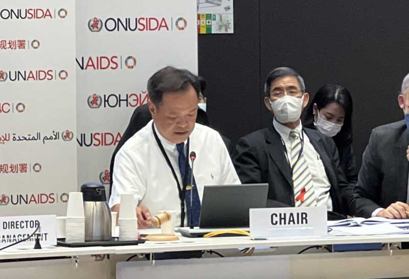 ที่นครเจนีวา สมาพันธรัฐสวิส ณ สำนักงานใหญ่องค์การอนามัยโลก (WHO) 24 มิถุนายน 2565 นายอนุทิน ชาญวีรกูล รองนายกรัฐมนตรี และรัฐมนตรีมนตรีว่าการกระทรวงสาธารณสุข พร้อมคณะ ได้เข้าร่วมประชุมคณะกรรมการบริหารโครงการโรคเอดส์แห่งสหประชาชาติ (UNAIDS Programme Coordinating Board: PCB) ปี 2565 ซึ่งประเทศไทยเป็นประธาน