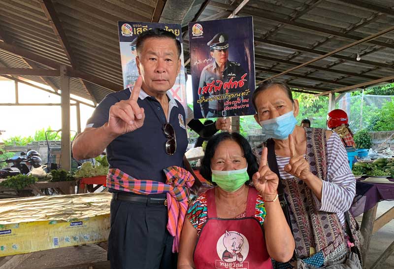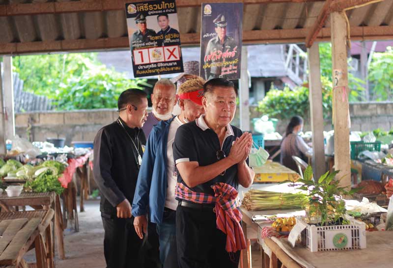 พล.ต.อ.เสรีพิศุทธ์ เตมียเวส หัวหน้าพรรคเสรีรวมไทย ลงพื้นที่ตลาดไหล่หิน อ.เกาะคา เพื่อช่วยนายเดชทวี ศรีวิชัย หาเสียงเลือกตั้งซ่อม ส.ส.เขต 4 จังหวัดลำปาง