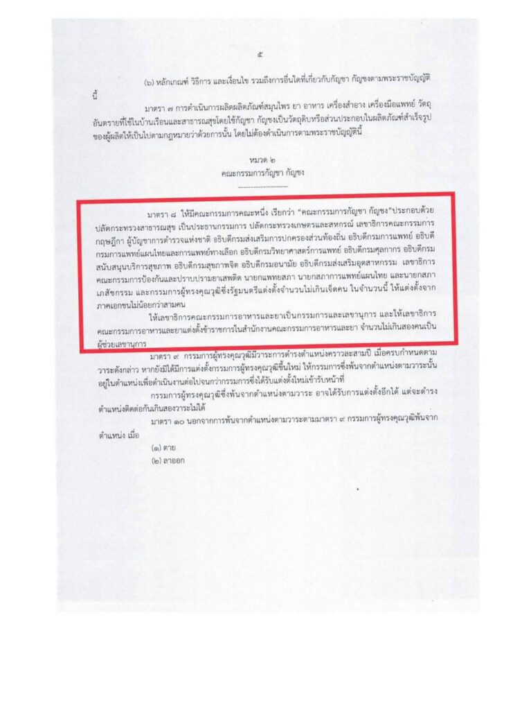 ได้ปรากฏอยู่ในร่าง พ.ร.บ. กัญชา กัญชง พ.ศ. ของพรรคภูมิใจไทยตั้งแต่แรกอยู่แล้ว และยังอาจมีกฎกติกาเพิ่มเติมในร่าง พ.ร.บ. กัญชา กัญชง พ.ศ. ด้วย ตามความเห็นของคณะกรรมาธิการฯ ที่กำลังเร่งปรับปรุงแก้ไขรายมาตราอยู่ในขณะนี้ ประการที่สาม คณะกรรมาธิการวิสามัญ พิจารณา ร่าง พ.ร.บ.กัญชา กัญชง พ.ศ.. ของสภาผู้แทนราษฎร มีองค์ประกอบที่มีความหลากหลายมาก ทั้งตัวแทนฝ่ายค้าน ตัวแทนฝ่ายรัฐบาล