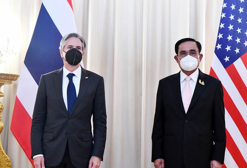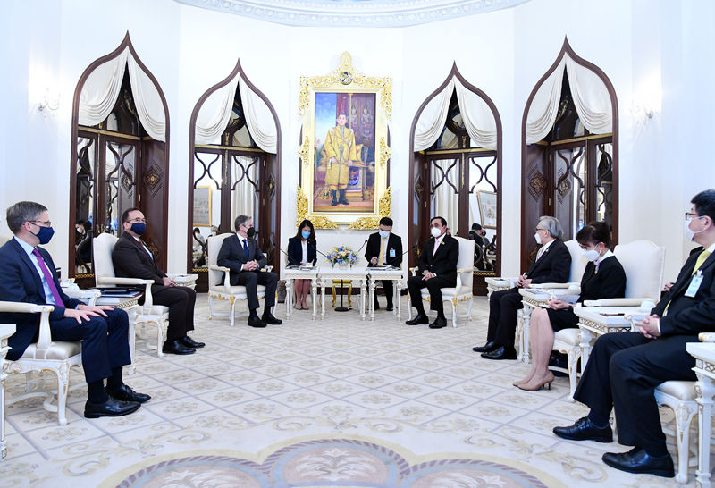 นายแอนโทนี บลิงเกน (H.E. Mr. Antony J. Blinken) รัฐมนตรีว่าการกระทรวงการต่างประเทศสหรัฐอเมริกา เข้าเยี่ยมคารวะ พล.อ. ประยุทธ์ จันทร์โอชา นายกรัฐมนตรีและรัฐมนตรีว่าการกระทรวงกลาโหม ในโอกาสเดินทางเยือนประเทศไทยอย่างเป็นทางการ