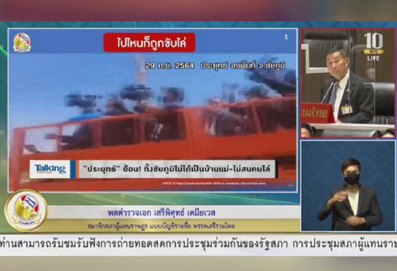 พล.ต.อ.เสรีพิศุทธ์ เตมียเวส ส.ส.แบบบัญชีรายชื่อ พรรคเสรีรวมไทย กล่าวอภิปรายไม่ไว้วางใจ พล.อ.ประยุทธ์ จันทร์โอชา นายกรัฐมนตรี และรัฐมนตรีว่าการกระทรวงกลาโหม ว่า ตั้งงบประมาณกระทรวงกลาโหมสูงกว่ากระทรวงอื่น ปฏิบัติหน้าที่โดยใช้อำนาจขัดต่อบทบัญญัติแห่งรัฐธรรมนูญหรือกฎหมาย ไม่สนใจชีวิตความเป็นอยู่ และความทุกข์ยากของประชาชน