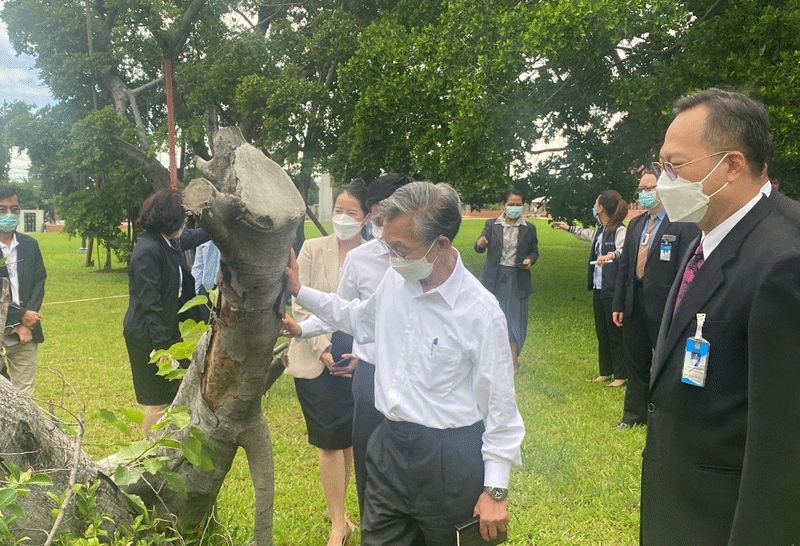 นายชวน หลีกภัย ประธานสภาผู้แทนราษฎร มาตรวจดูต้นไทรที่ล้ม หลังจากการฝนตกหนักบริเวณ หน้าอาคารรัฐสภา โดยมีผู้อำนวยการงานก่อสร้างอาคารรัฐสภาของบริษัทชิโนไทยมาให้ข้อมูล ซึ่งต้นไทรที่ล่มนั้น