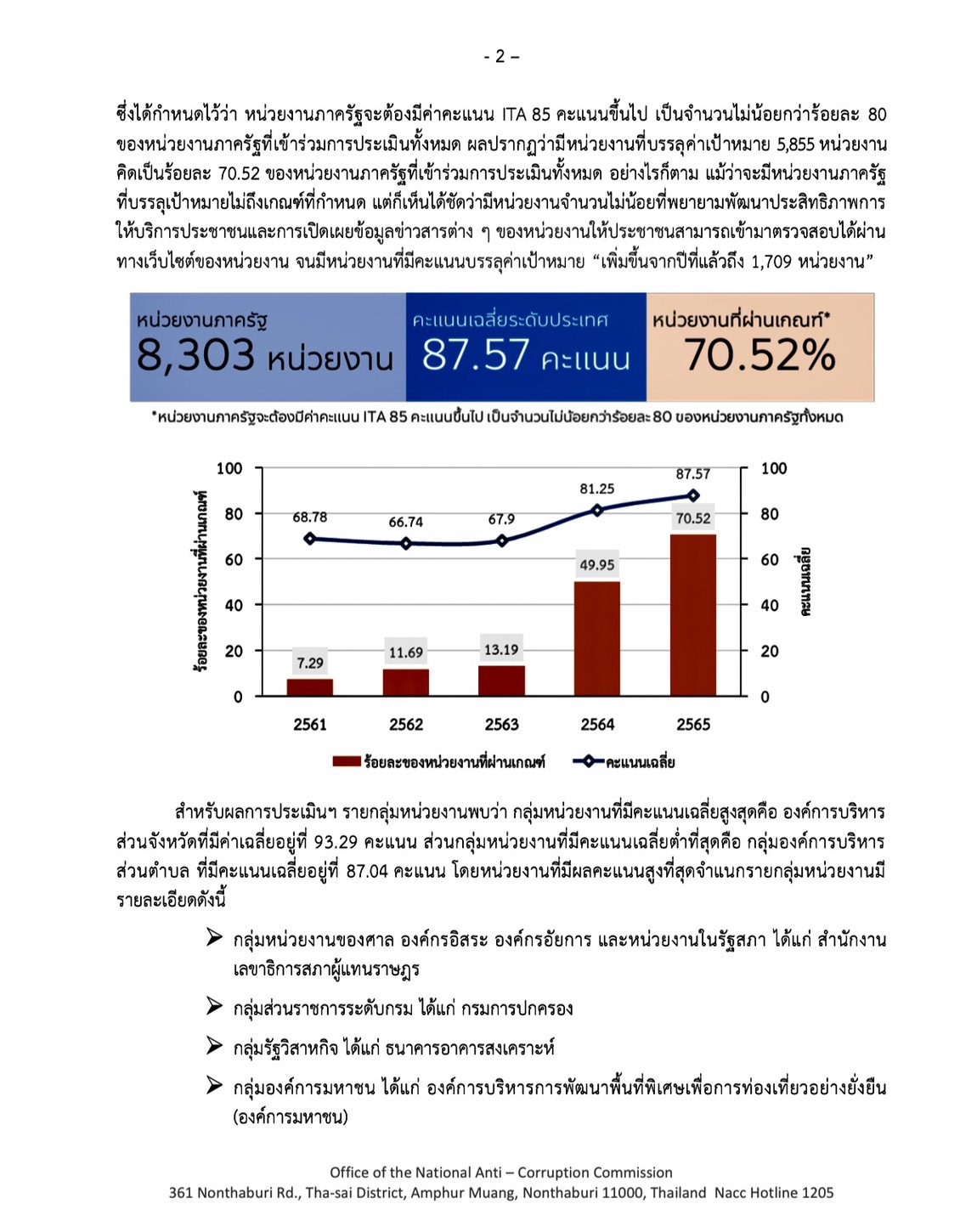 ปปช. ประกาศผลประเมินคุณธรรมความโปร่งใสหน่วยงานรัฐ คะแนนเฉลี่ย 87.57 ดีขึ้นกว่าปีก่อน