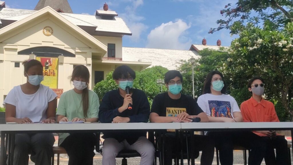 นายศรัณย์ สัชชานนท์ ตัวแทนสภานักศึกษามหาวิทยาลัยธรรมศาสตร์ พร้อมด้วยตัวแทนจากแนวร่วมธรรมศาสตร์และการชุมนุม แถลงข่าวการจัดการชุมนุมในวันที่ 10 ส.ค.นี้ เวลา 17.00 น.ที่ลานพญานาค มหาวิทยาลัยธรรมศาสตร์ ศูนย์รังสิต