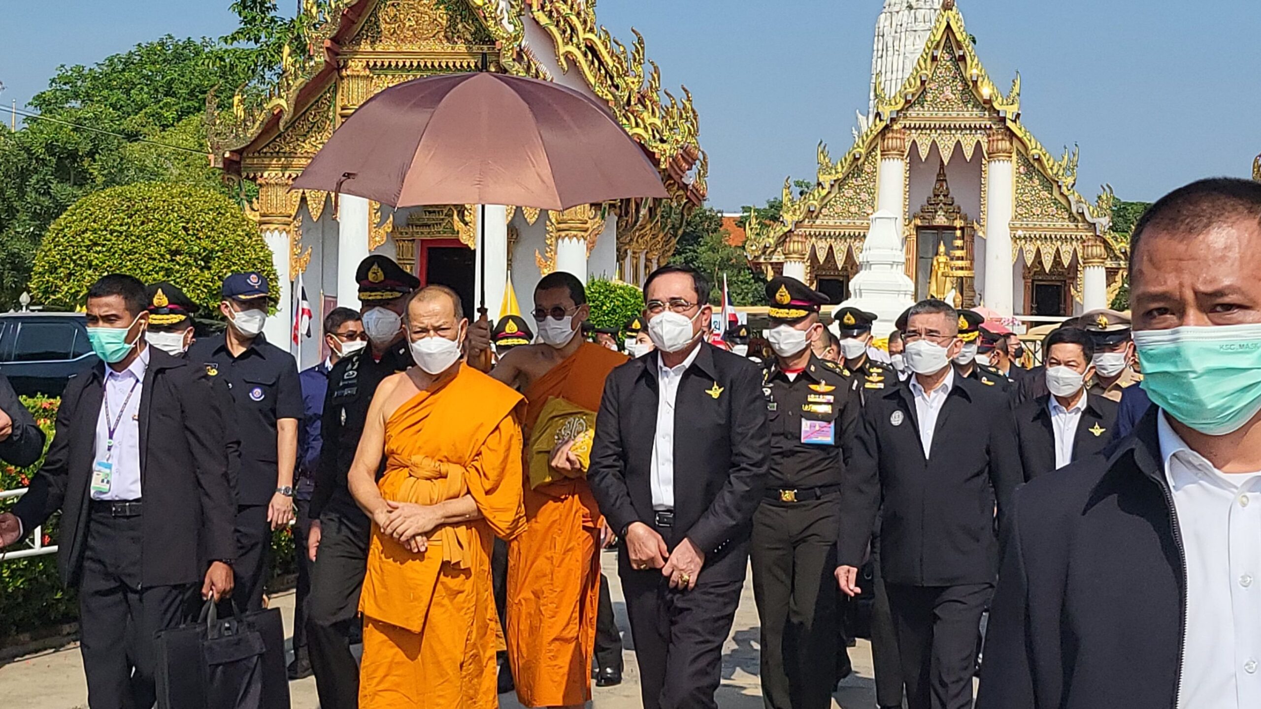 ทั้งนี้ ก่อนที่จะเดินทางกลับพล.อ.ประยุทธ์ ได้ทักทายและให้กำลังใจกำลังพลที่มาปฏิบัติงาน พร้อมถามว่ามาจากหน่วยไหน พื้นที่ใดกันบ้าง และถามว่า รู้หรือยังเป็นทหารได้อะไร มีวินัย ให้ความรู้ ทำไปวันหน้าจะได้เป็นหัวหน้าครอบครัวที่ดี โดยก่อนเดินทางออกจากวัดสื่อมวลชนได้ถามย้ำถึงการลงนามในคำชี้แจงต่อศาลรัฐธรรมนูญประเด็นวาระดำรงตำแหน่งนายกรัฐมนตรี 8 ปี ว่า ข่าวออกมายังไง ก็เป็นข่าวไปหมดแล้ว เมื่อถามย้ำว่าได้ส่งคำชี้แจงต่อศาลรัฐธรรมนูญแล้วหรือไม่ พล.อ.ประยุทธ์ ไม่ได้ตอบคำถามดังกล่าว ขณะที่บรรยากาศบริเวณทางออกหน้าวัดมีประชาชนกลุ่มหนึ่งสวมใส่เสื้อสีฟ้าและน้ำเงินมาถือป้ายให้กำลังใจพล.อ.ประยุทธ์ ว่า สู้ สู้- อยุธยารักลุงตู่ โดยชาวบ้านได้ระบุว่า เสียใจมากมารอตั้งแต่ตี 4 ตี 5 แต่ไม่ให้เข้าพบ