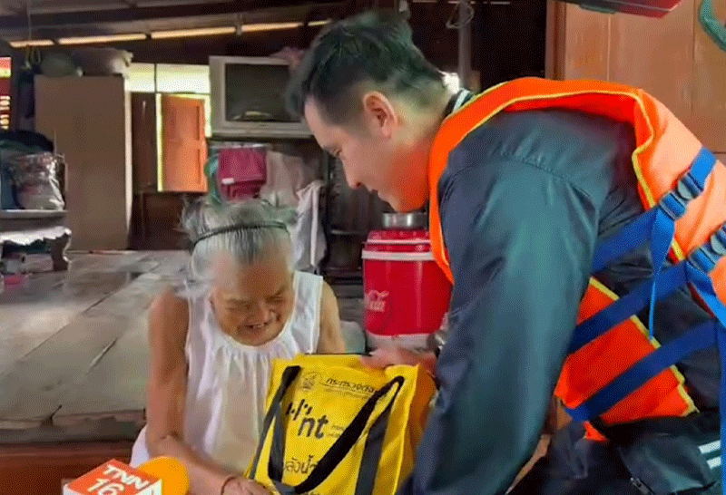 “ชัยวุฒิ” ดูน้ำท่วมอยุธยา ออกตัวมาในนามรัฐบาล บอกห่วงใยประชาชน อยากมาเห็นปัญหา ก่อนนั่งเรือมอบถุงยังชีพ เจอยายวัย 83 อวยพร ขอให้รวย