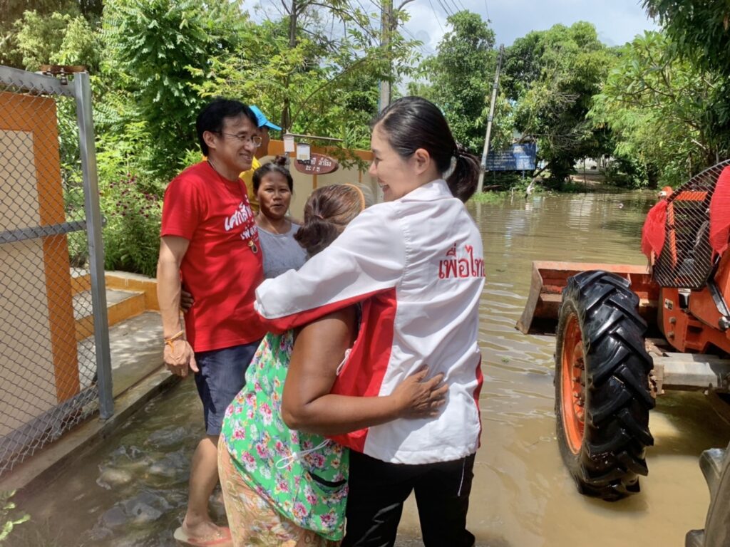 นางสาวจิราพร สินธุไพร ส.ส. จ.ร้อยเอ็ด เขต 5 และกรรมการบริหารพรรคเพื่อไทย นางสาวชญาภา สินธุไพร รองโฆษกพรรคเพื่อไทย นายเศกสิทธิ์ ไวนิยมพงศ์ ว่าที่ นายก อบจ.ร้อยเอ็ด นางเอมอร สินธุไพร อดีต ส.ส. พรรคเพื่อไทย พร้อมผู้นำชุมชน ลงพื้นที่เยี่ยมพี่น้องประชาชนที่อำเภอโพนทราย จังหวัดร้อยเอ็ด ที่ถูกน้ำท่วมพื้นที่จากผลกระทบจากพายุโนรู เนื่องจากพื้นที่ดังกล่าวรับน้ำมาจากลำตะคอง จังหวัดนครราชสีมา