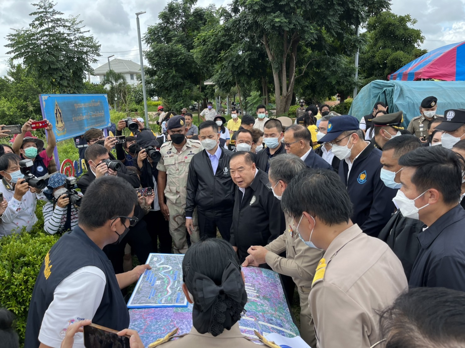 พร้อมรับฟังการบรรยายสรุปสถานการณ์อุทกภัยและการให้ความช่วยเหลือประชาชน ที่ได้รับผลกระทบจากภาวะน้ำท่วม น้ำหลาก ในพื้นที่ จากหน่วยงานที่เกี่ยวข้อง จากนั้นได้พบปะพี่น้องประชาชนที่มาให้การต้อนรับ และให้กำลังใจชาวบ้าน และเจ้าหน้าที่ผู้ปฏิบัติงาน ด้วยความเสียสละ ทุ่มเท ในการช่วยเหลือประชาชน อย่างเต็มกำลัง อยู่ในขณะนี้