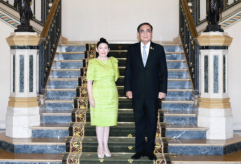 น.สเซซิเลีย ซูนิลดา กาลาร์เรตา บาซัน (H.E. Miss Cecilia Zunilda Galarreta Baz n) เอกอัครราชทูตสาธารณรัฐเปรูประจำประเทศไทย เข้าเยี่ยมคารวะ พล.อ.ประยุทธ์ จันทร์โอชา นายกรัฐมนตรีและรัฐมนตรีว่าการกระทรวงกลาโหม ในโอกาสเข้ารับหน้าที่