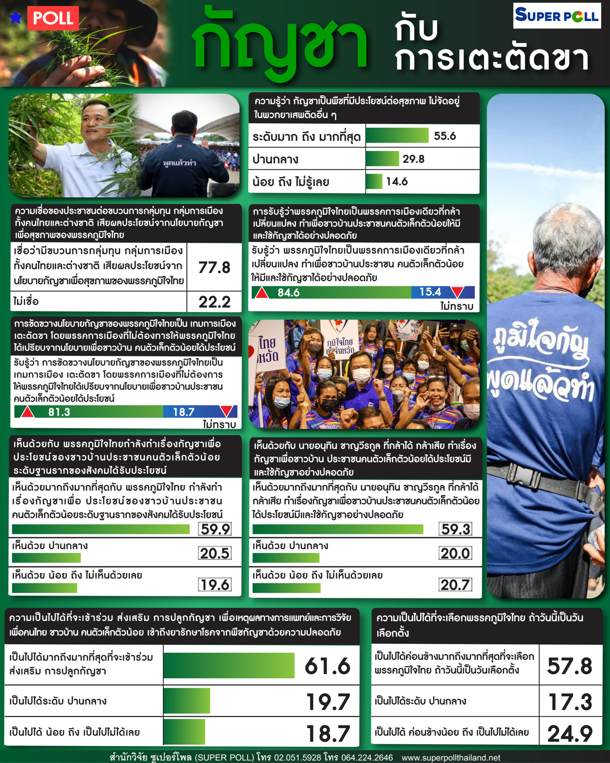 SUPER โพล คนหนุน “อนุทิน” ชูนโยบายกัญชา มองเกมการเมืองถูกขวาง เตะตัดขา มีคนเสียผลประโยชน์ ขณะวันเลือกตั้งจะกาภูมิใจไทย