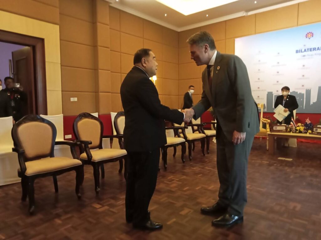 ความร่วมมือทางทหารภายใต้กรอบความร่วมมือ ADMM และ ADMM – Plus และต้องการยกระดับความร่วมมือให้มากขึ้นโดยมีคณะทำงานขับเคลื่อนร่วมกัน ทั้งนี้ไทยตระหนักถึงปัญหาภัยคุกคามทางไซเบอร์การก่อการร้ายอาชญากรรมข้ามชาติความมั่นคงทางทะเลตลอดจนการเปลี่ยนแปลงสภาพภูมิอากาศและการเปลี่ยนผ่านสู่พลังงานสะอาดโดยหวังว่าจะมีการพัฒนาความร่วมมือระหว่างกันในการแก้ปัญหาในอนาคตต่อไป
