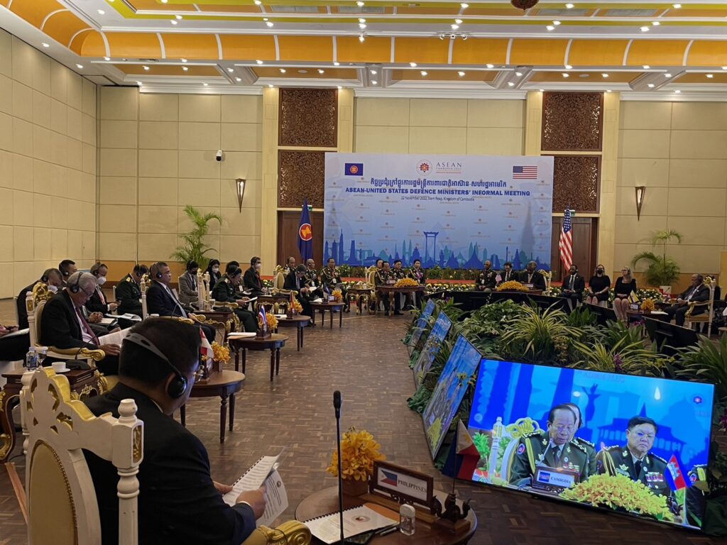 จากนั้น บ่ายวันเดียวกัน ได้เข้าร่วมประชุมรัฐมนตรีมนตรีว่าการกระทรวงกลาโหมอาเซียน กับรัฐมนตรีมนตรีว่าการกระทรวงกลาโหมสหรัฐฯ อย่างไม่เป็นทางการ โดยแลกเปลี่ยนมุมมองและการแสวงโอกาสความร่วมมือในการพัฒนาศักยภาพด้านการป้องกันประเทศของอาเซียน การส่งเสริมความร่วมมือกันรับมือกับความท้าทาย และความมั่นคงทางทะเล