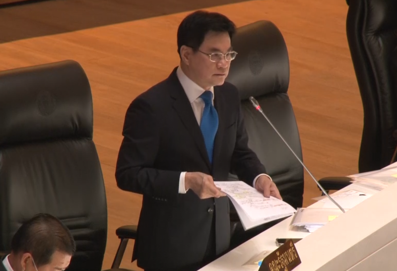 นายจุรินทร์ ลักษณวิศิษฏ์ รองนายกรัฐมนตรีและรัฐมนตรีว่าการกระทรวงพาณิชย์ ลุกขึ้นชี้แจงตอบโต้การอภิปรายไม่ไว้วางใจของนายประเสริฐ