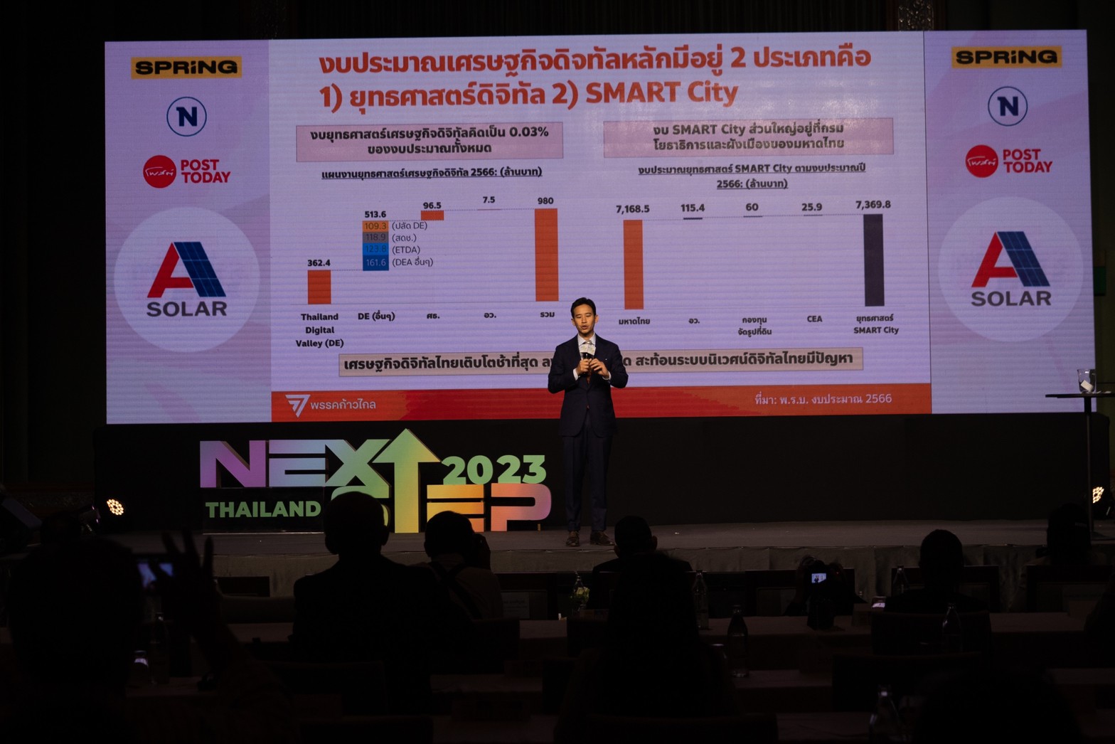 นายพิธา ลิ้มเจริญรัตน์ หัวหน้าพรรคก้าวไกล ร่วมแสดงวิสัยทัศน์นโยบายเศรษฐกิจดิจิทัลในหัวข้อ ‘เทรนด์ใหม่ของเศรษฐกิจดิจิทัลและยุทธศาสตร์ด้านนวัตกรรมเพื่อความยั่งยืน’ ร่วมกับแกนนำพรรคการเมืองใหญ่ 5 พรรค ในงานเสวนา “Next Step Thailand 2023 ทิศทางแห่งอนาคต”ความตอนหนึ่งว่า เศรษฐกิจดิจิทัลไทยในปัจจุบันมีมูลค่ากว่า 1.2 ล้านล้านบาท คาดการณ์การเติบโตอยู่ที่ 15% ต่อปี โดยมีการลงทุนจากภาคเอกชนอยู่ที่ราว 2 หมื่นล้านบาท