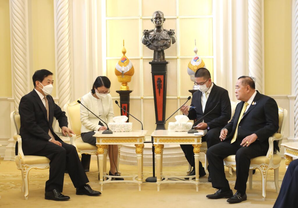 พล.อ.ประวิตร วงษ์สุวรรณ รองนายกรัฐมนตรี ได้ให้การต้อนรับ นายหาน จื้อเฉียง เอกอัครราชทูตสาธารณรัฐประชาชนจีน ประจำประเทศไทย ณ ห้องสีเหลือง ตึกสันติไมตรี ทำเนียบรัฐบาล โดยได้กล่าวแสดงความยินดีที่ความสัมพันธ์ระหว่างไทยกับจีน ดำเนินมาอย่างยาวนาน และเข้มแข็ง แม้ในสถานการณ์ โควิด-19 และยืนยันว่า รัฐบาลไทย มีความมุ่งมั่นที่จะสานต่อ และร่วมมือกับรัฐบาลจีนเพื่อขับเคลื่อนความร่วมมือในทุกมิติ ให้ก้าวหน้ามากยิ่งขึ้น และเป็นรูปธรรม