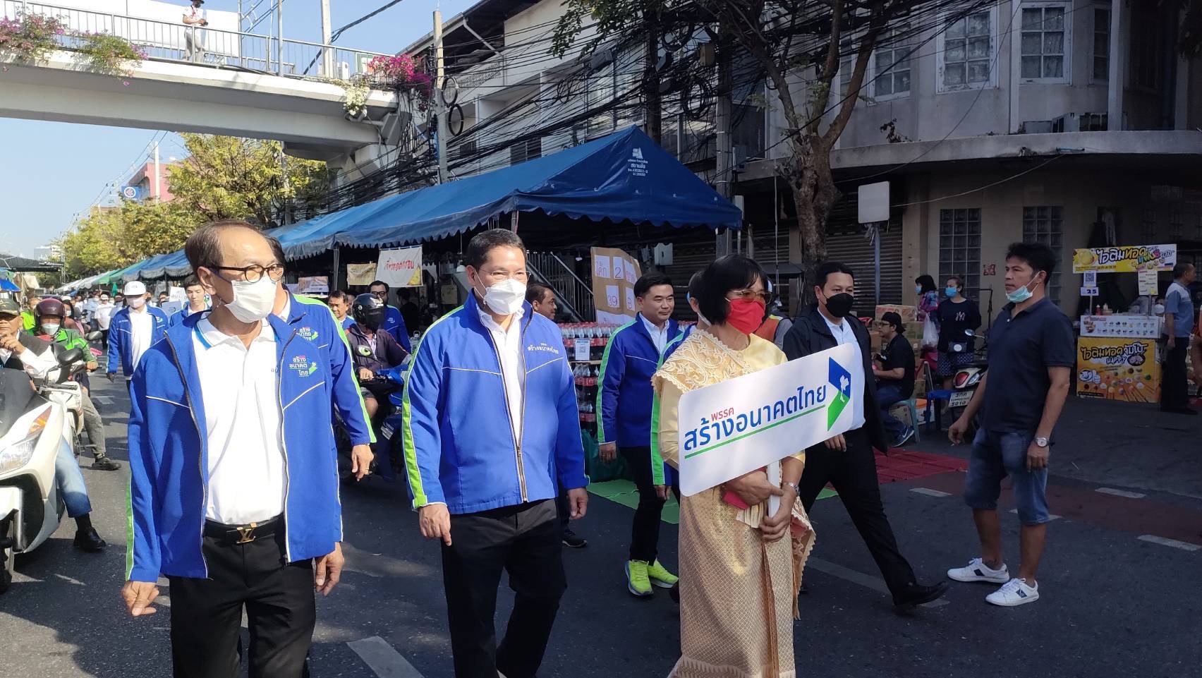 นายอุตตม สาวนายน หัวหน้าพรรคสร้างอนาคตไทย พร้อมกับนายวิเชียร เชาวลิต รองหัวหน้าพรรคและผู้อำนวยการพรรค และนายสันติ กีระนันทน์ รองหัวหน้าพรรคและประธานนโยบายพรรค นำคณะผู้บริหารพรรค และนายสุวัฒน์ ม่วงศิริ นายปิยวุฒิ จิรธนาภา