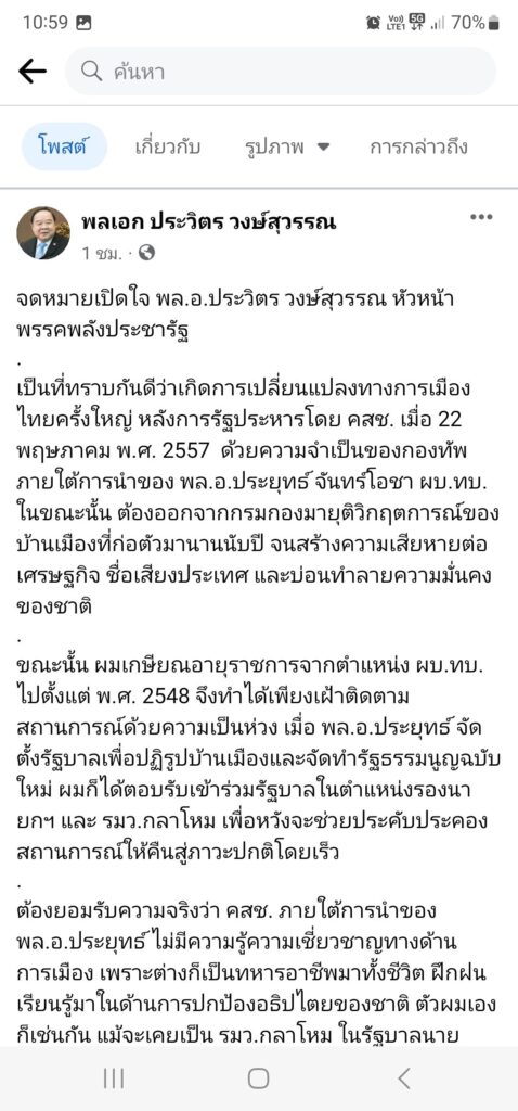 ประวิตร รับ จดหมายเปิดใจ เป็นของจริง หวังสื่อถึงประชาชน ไม่ใช่ถึงน้องรัก “บิ๊กตู่” เพราะไม่ได้เขียนเอง พรรคทำ ย้ำ 3 ป. ยัง Forever ยันไม่มีฉบับ 2 แล้ว ปัดมอง ส.ว.รื้อ รธน.แก้วาระ 8 ปีนายกฯ บอกไม่รู้ ปัดให้ความเห็น