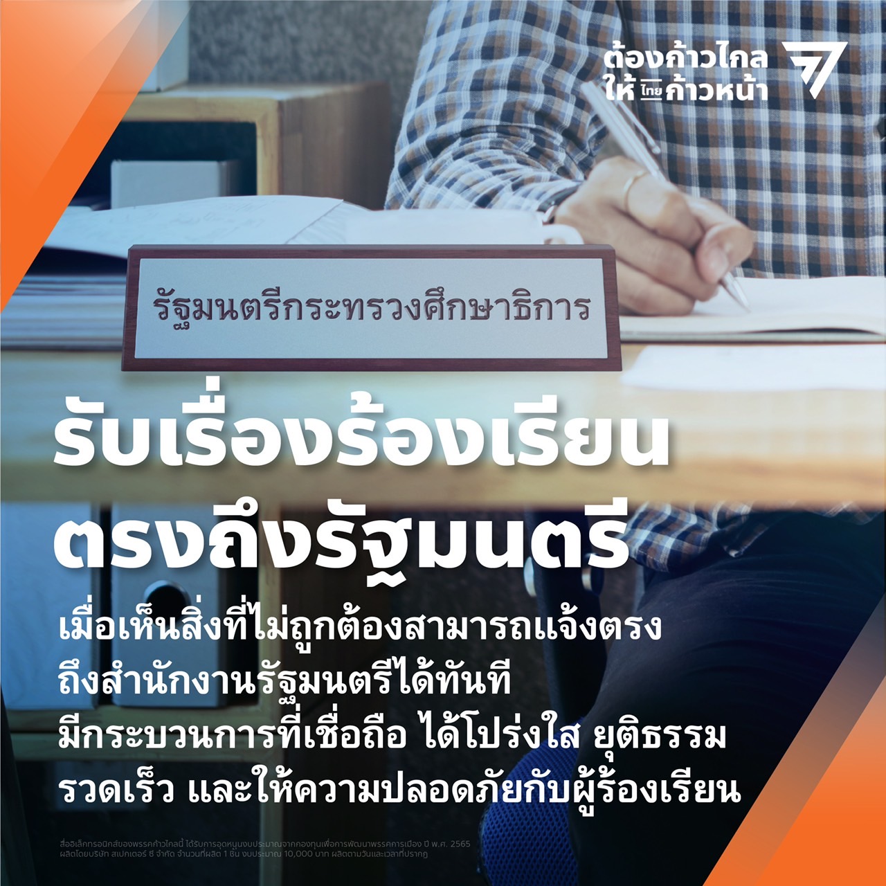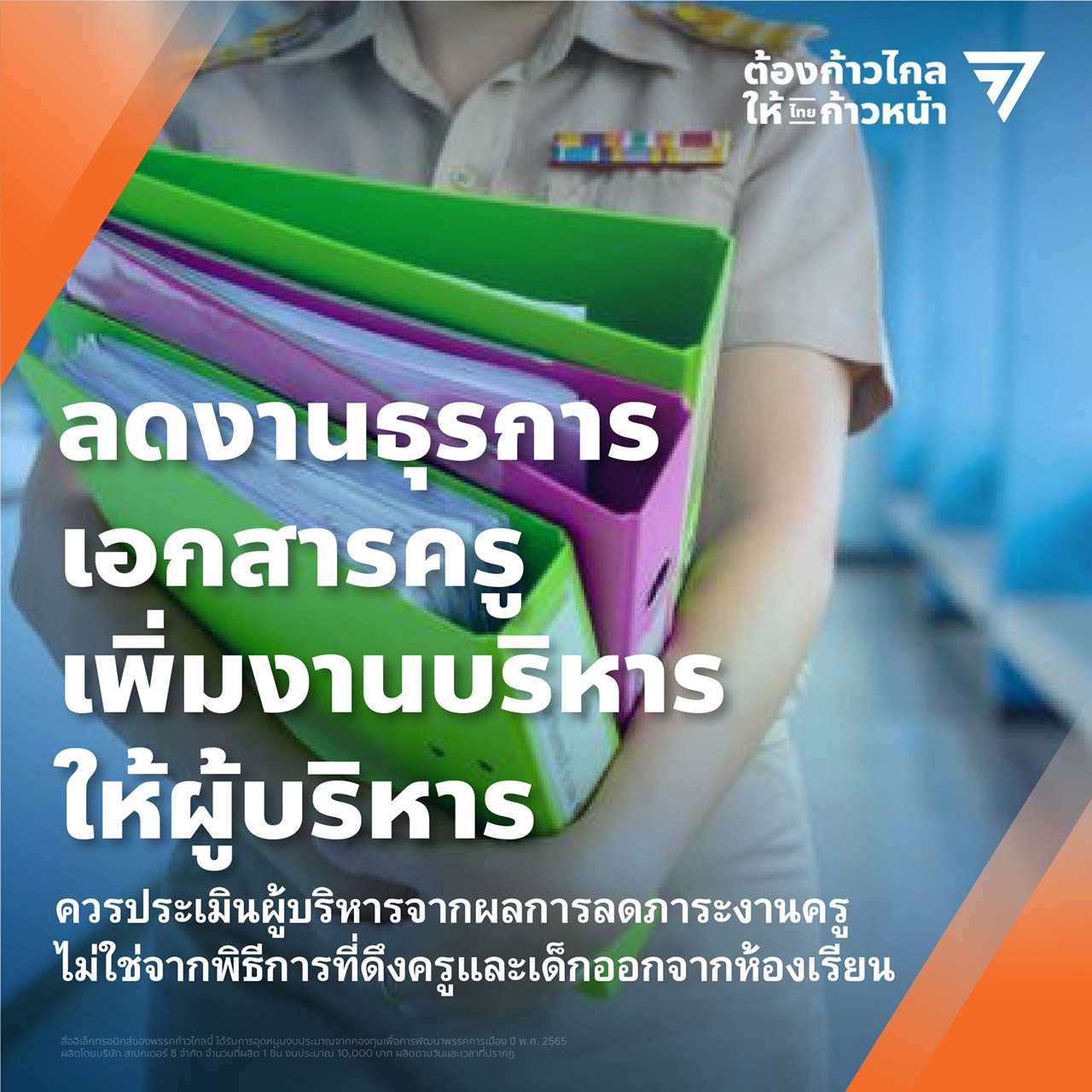ก้าวไกลประกาศนโยบาย ลดงานครู คืนครูให้นักเรียน ยกเลิกครูนอนเวร ลดงานธุรการเอกสาร เพิ่มค่าตอบแทนครูบรรจุใหม่ ชวนเปลี่ยนวิธีปฏิรูปการศึกษา