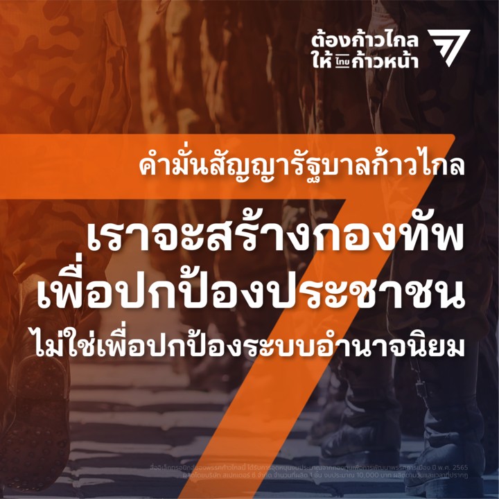 นักการเมืองในคราบทหารในรัฐบาลปัจจุบันและเครือข่ายผลประโยชน์ในกองทัพบางฝ่าย จะพยายามตีตราและตีขลุมว่าเรา – พรรคก้าวไกล – เป็นปฏิปักษ์ต่อกองทัพ แต่ความจริงไม่ได้เป็นเช่นนั้น