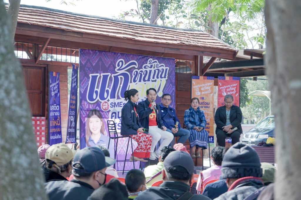 นายสุพันธุ์ มงคลสุธี รองหัวหน้าพรรคไทยสร้างไทย และประธานคณะกรรมการยุทธศาสตร์ด้านเศรษฐกิจ และน.ส.ศวิตา สำลีพันธุ์ ว่าที่ผู้สมัคร ส.ส. เขต 4 จ.เลย ขึ้นเวทีเสวนา ‘SMEs สร้างไทย คนตัวเล็กสร้างชาติ’ ตอน ‘แก้หนี้กันเลย’ ที่ลานวัฒนธรรมริมโขง อ.เชียงคาน จ.เลย ร่วมพูดคุยกับ นายวัชรา สุริยกุล ณ อยุธยา ประธานจังหวัดเลย สมาพันธ์เอสเอ็มอีไทย, คุณอภิสรา คำมาพา เจ้าของกิจการมะพร้าวแก้วเคียงเลย, และคุณเบญจมาภรณ์ ฉัตร์คำ เจ้าของบ้านต้นโขงเกสท์เฮ้าส์ โดยมีประชาชนและผู้ประกอบการในพื้นที่มาร่วมฟัง