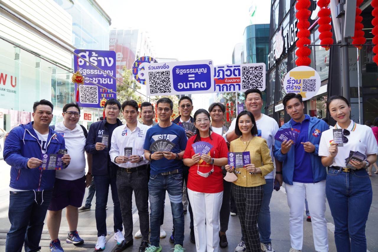 คุณหญิงสุดารัตน์ เกยุราพันธุ์ หัวหน้าพรรคไทยสร้างไทย พร้อมด้วย น.ต.ศิธา ทิวารี เลขาธิการพรรค และทีมคนรุ่นใหม่ และน้องจินนี่ ได้เดินรณรงค์ เชิญชวนลงชื่อแก้ไขรัฐธรรมนูญ เพื่อสร้าง”รัฐธรรมนูญของประชาชน” โดยการเลือกตั้ง ส.ส.ร. ที่พรรคไทยสร้างไทย ได้เสนอเข้าสู่สภาเรียบร้อยแล้ว ที่บริเวณสยามสแควร์วัน