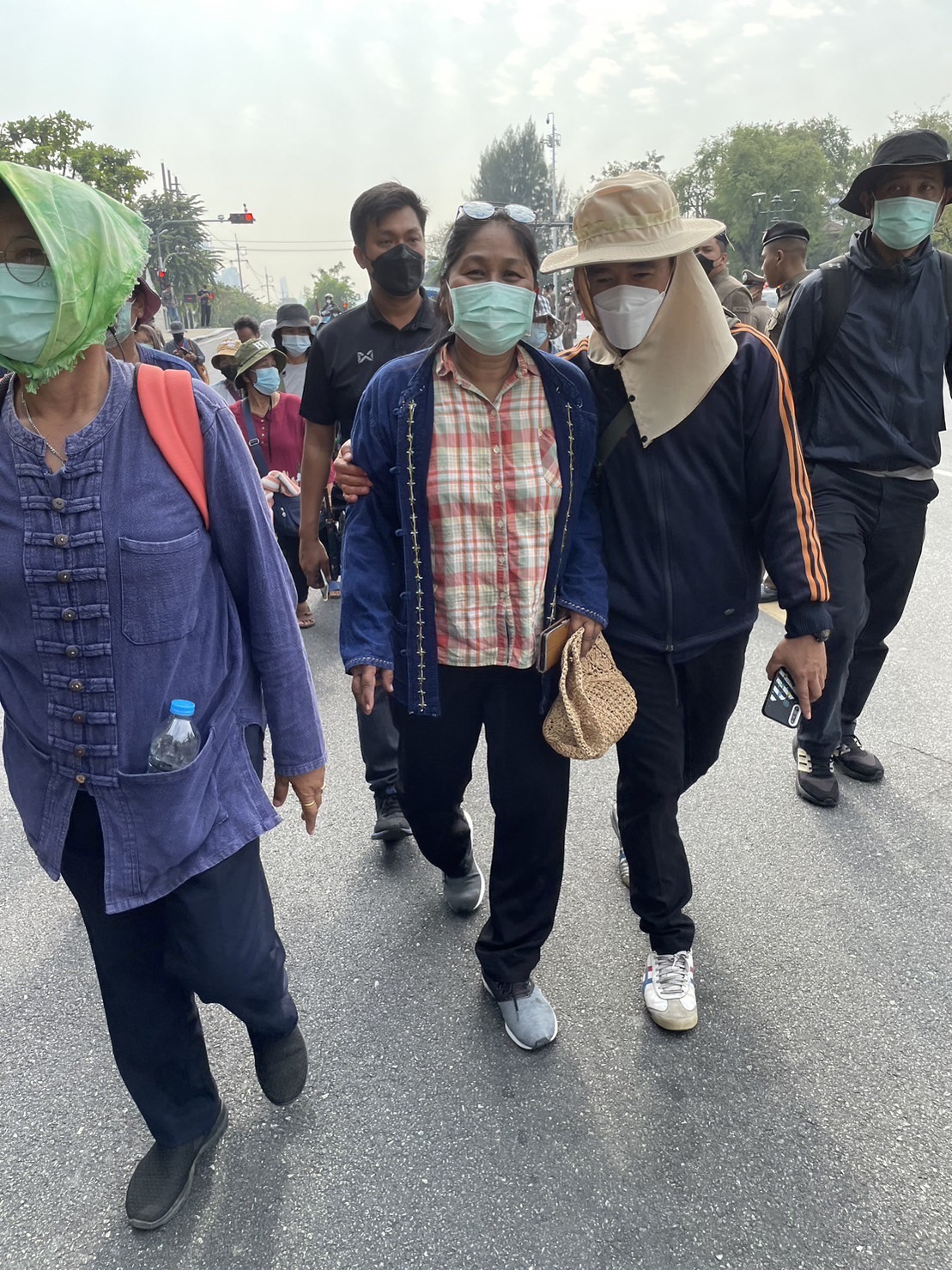 กลุ่มกองทุนฟื้นฟูเพื่อเกษตรกร จำนวนประมาณ 50 คน ได้เดินเท้าจากหน้ากระทรวงเกษตร มายังทำเนียยนัฐบาล ผ่านทางสะพานชมัยมรุเชฐ และมุ่งหน้าเดินเท่าเข้าสู่สำนักงานข้าราชการพลเรือน (กพ.)
