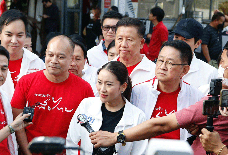 การกลับมาตรงนี้ได้รับฟังเรื่องเล่าจากคุณพ่อก็รู้สึกอบอุ่น และต้องขอบคุณพี่น้องประชาชนที่มาต้อนรับอย่างอบอุ่น พรรคเพื่อไทย ตั้งแต่สมัยไทยรักไทย โดนยุบไป สร้างขึ้นมาใหม่โดนยุบอีก ก็ขึ้นมาใหม่ ตอนนี้เราอยากจะเป็นพรรคที่แข็งแรง พรรคที่ขับเคลื่อนโดยเอาพี่น้องประชาชนเป็นที่ตั้ง นโยบายของประชาชนเป็นศูนย์กลาง เพื่อที่จะแก้ไขปัญหาปากท้องให้พี่น้องประชาชนได้จริงๆ