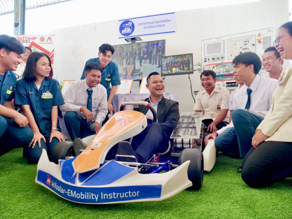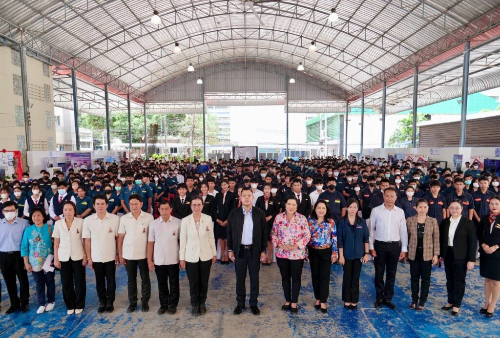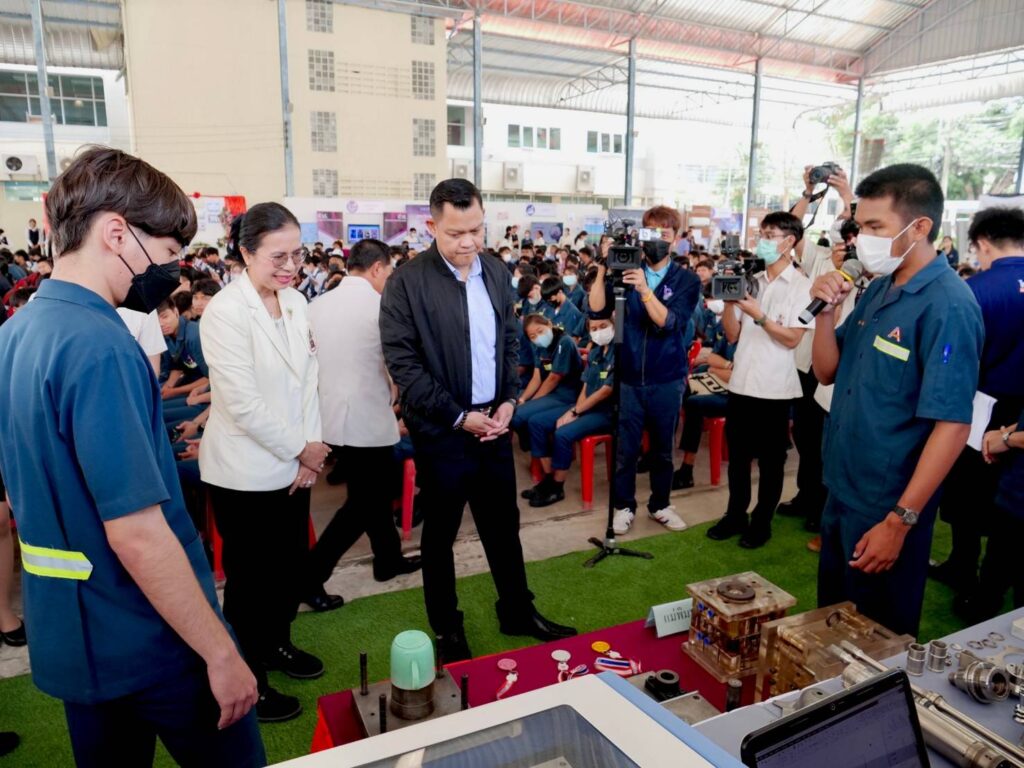 ต่อจากนั้น เวลา 13.00 น. รัฐมนตรีประจำสำนักนายกรัฐมนตรี ได้เดินทางไปยังวิทยาลัยเทคนิคสัตหีบ จ.ชลบุรี โดยมี ดร. อรทัย โยธินรุ่งเรือง สุดสงวน ผู้อำนวยการวิทยาลัยเทคนิคสัตหีบ พร้อมนักศึกษาร่วมต้อนรับ โดยได้เยี่ยมชมผลงานของนักศึกษาและติดตามโครงการสัตหีบโมเดล ซึ่งเป็นการพัฒนากำลังคนอาชีวศึกษาสู่ตลาดแรงงานภาคอุตสาหกรรมในเขตพัฒนาพิเศษภาคตะวันออก (EEC)