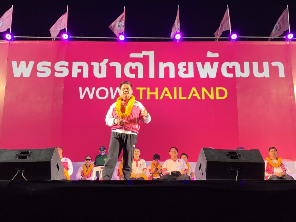 ทั้งพรรคให้แลนด์สไลด์ และไปชักชวนญาติ พี่น้องเพื่อนฝูง ให้ช่วยกันเลือกพรรคชาติไทยพัฒนาทั้งประเทศ ยืนยันว่าพรรคชาติไทยพัฒนา ถึงจะเป็นพรรคเล็ก แต่เราคิดใหญ่ และจะเป็นพรรคใหญ่ให้ได้ เพื่อสักวันหนึ่งจะส่งนายวราวุธ เป็นนายกรัฐมนตรี ให้ได้