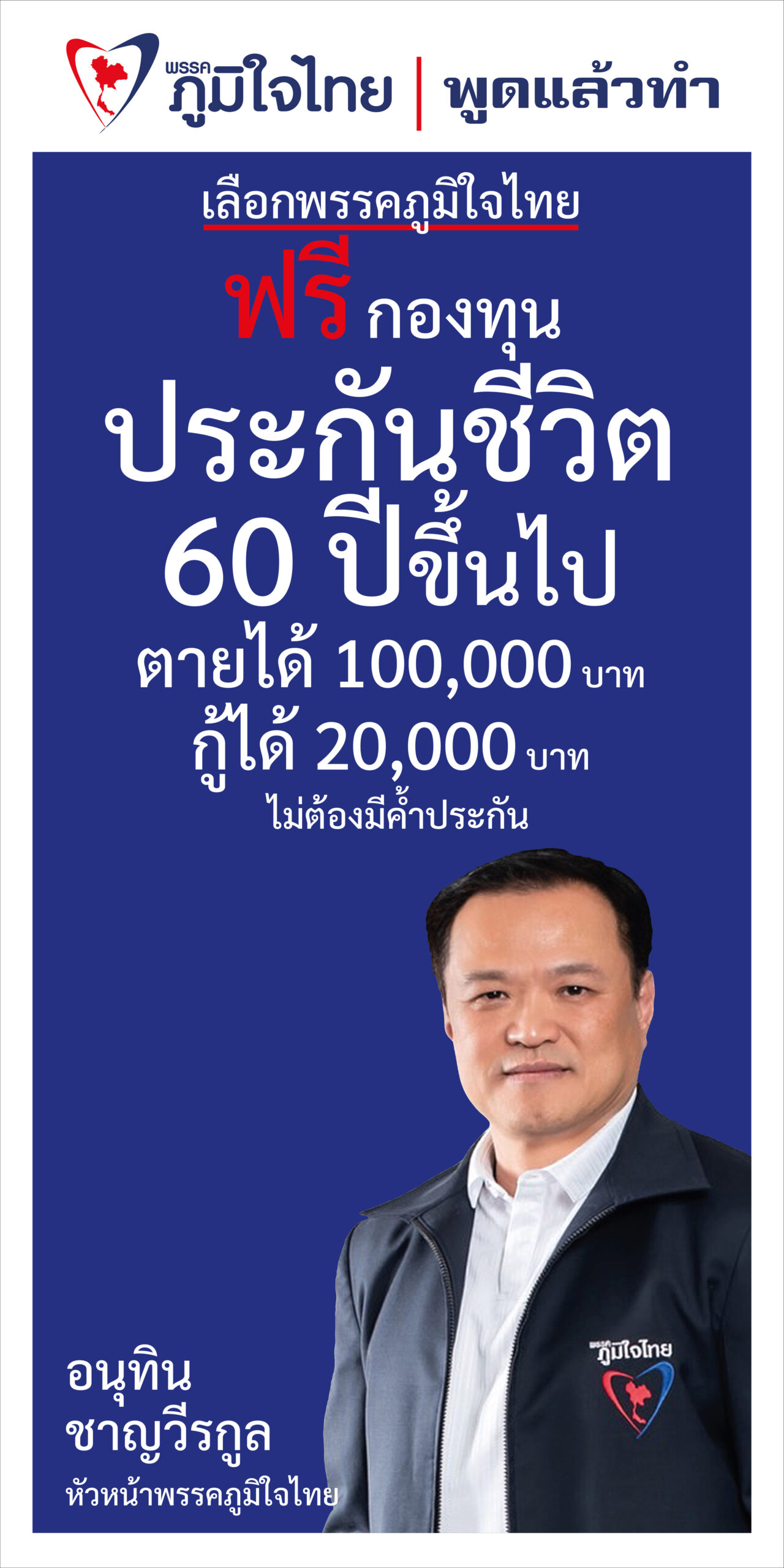 “พรรคภูมิใจไทย” ออกนโยบายล่าสุด “กองทุนประกันชีวิต 60 ปีขึ้นไป” เป็นสวัสดิการใหม่ ที่รัฐบาล จะจัดให้แก่ประชาชนคนไทยทุกคน ที่มีอายุ 60 ขึ้นไป ฟรี