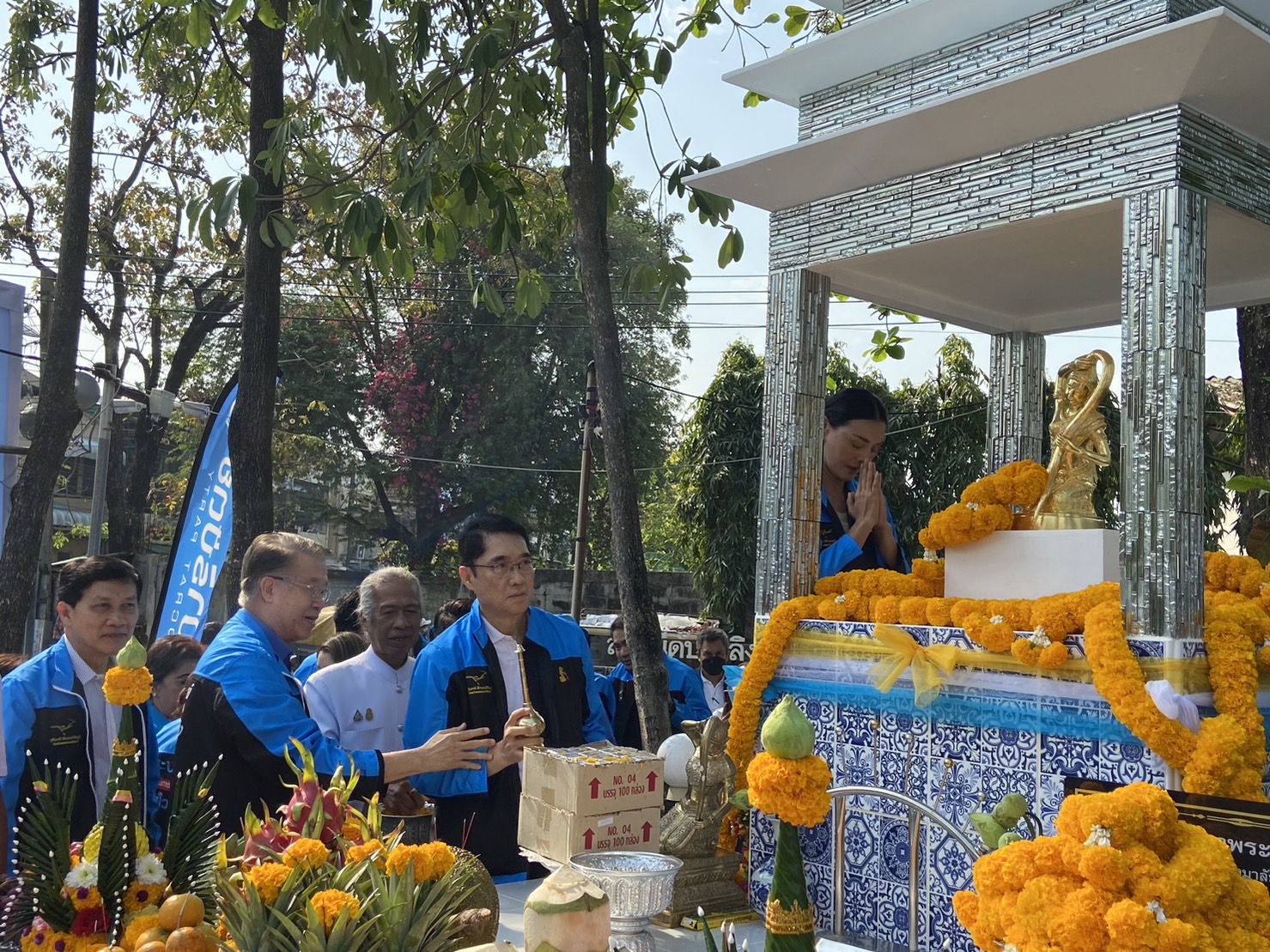 นายบัญญัติ บรรทัดฐาน ส.ส.บัญชีรายชื่อและประธานกรรมการที่ปรึกษาพรรคประชาธิปัตย์ เป็นประธานนำอัญเชิญองค์พระแม่ธรณี ประดิษฐานขึ้นหน้าศูนย์การเลือกตั้ง โดยมี