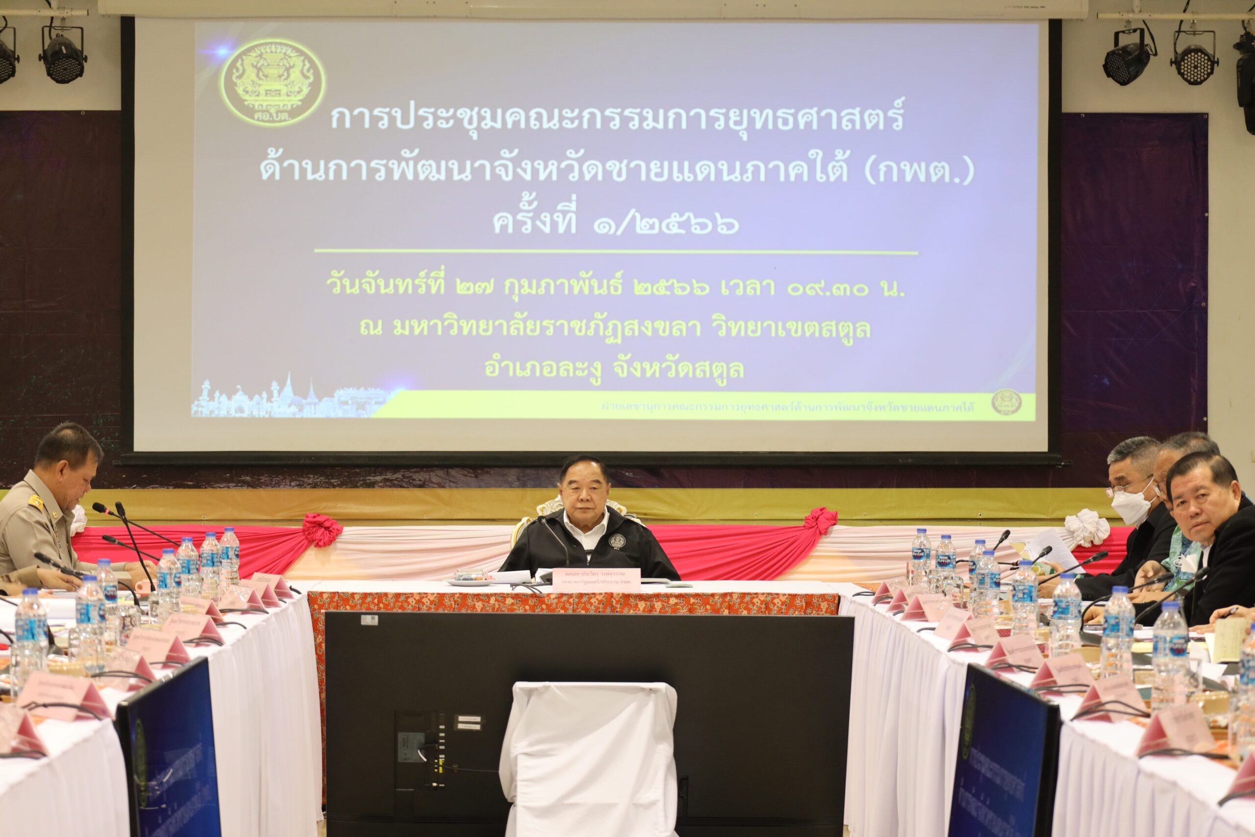 พล.อ.ประวิตร วงษ์สุวรรณ รองนายกรัฐมนตรี พร้อมด้วย น.ส.ตรีนุช เทียนทอง รัฐมนตรีว่าการกระทรวงศึกษาธิการรัฐมนตรี พล.อ.ชัยชาญ ช้างมงคล รัฐมนตรีช่วยว่าการกลาโหม และคณะ เดินทางลงพื้นที่ภาคใต้ จ.สตูล และจ.ตรัง เป็นประธานการประชุมคณะกรรมการยุทธศาสตร์การพัฒนาจังหวัดชายแดนภาคใต้ (กพต.) ครั้งที่ 1/66 ณ ม.ราชภัฏสงขลาวิทยาเขตสตูล