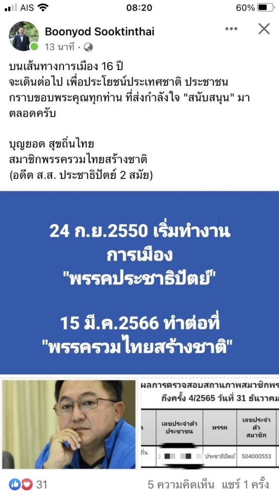 “บุญยอด”อดีต ส.ส.ประชาธิปัตย์ ลาออกจากพรรค ขอบคุณ ผู้ใหญ่ที่เมตตา ร่วมต่อสู้ทางการเมือง บอกจะไม่ลืมบุญคุณ