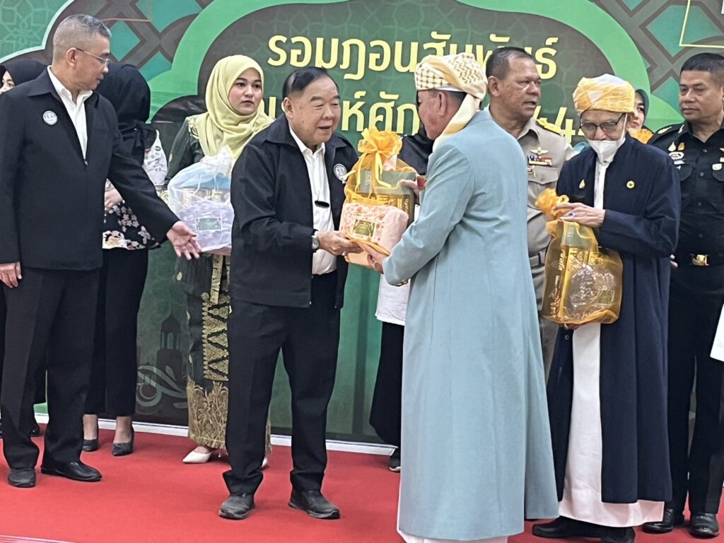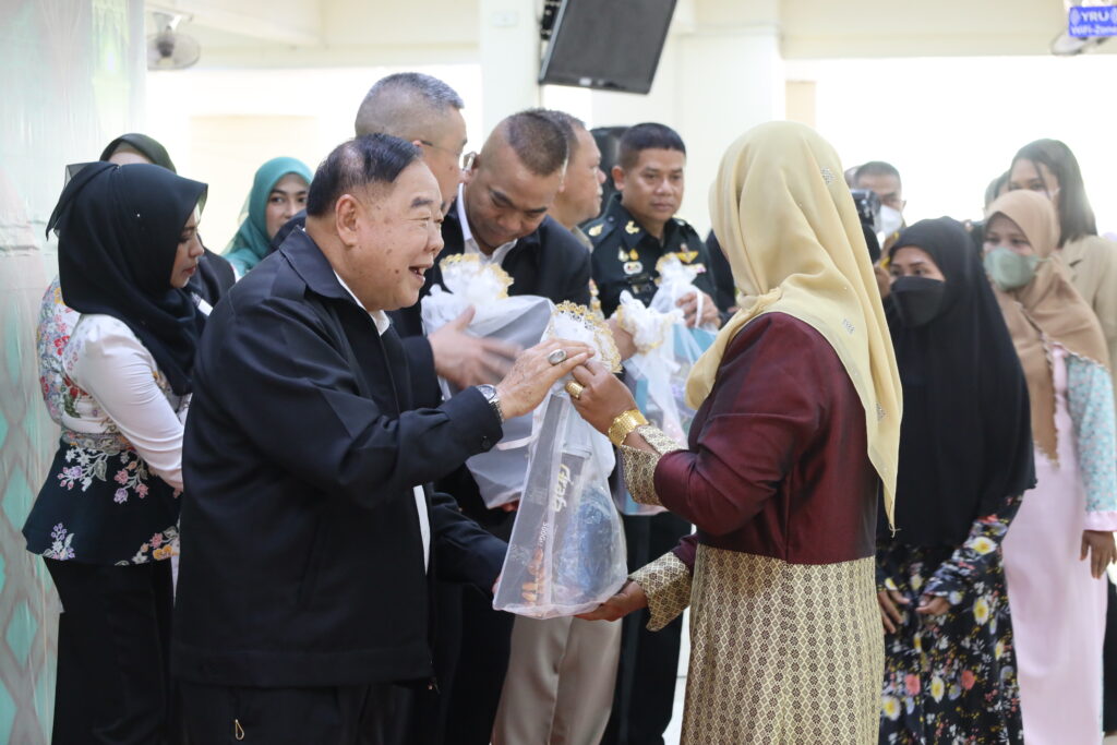 จากนั้น ได้พบปะพี่น้องประชาชน ที่มาให้การต้อนรับ อย่างอบอุ่นและเป็นกันเอง พร้อมทั้งได้ทำการมอบผ้าละหมาด และอินทผาลัมแก่ผู้แทน หน่วยงาน/องค์กร ในพื้นที่ 5 จชต. บริเวณห้องโถงอาคาร ม.ราชภัฏยะลา ซึ่งได้มีผู้แทนกล่าวขอบคุณ ในโอกาสที่ท่านให้การช่วยเหลือและสนับสนุนโครงการต่างๆ