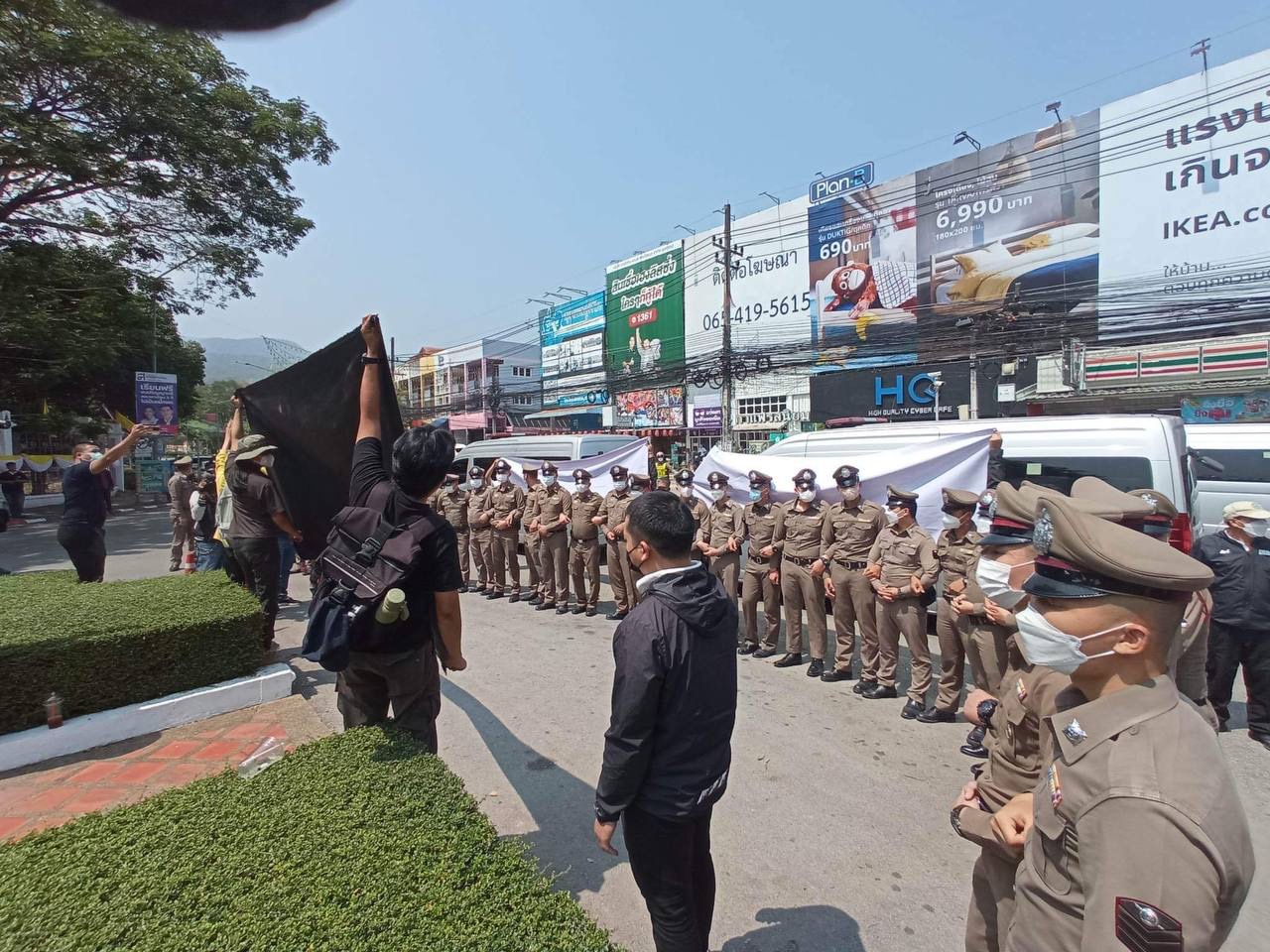 โดยการชู 3 นิ้ว และชูป้ายให้กับ พล.อ.ประยุทธ์ อีกครั้ง แต่เจ้าหน้าได้เข้าไปสะกัดอีกครั้ง จนขบวนรถของพล.อ.ประยุทธ์ สามารถผ่านมายังศูนย์ประชุมและแสดงสินค้านานาชาติ เฉลิมพระเกียรติฯ เชียงใหม่ ตำบลช้างเผือก อำเภอเมืองเชียงใหม่ จังหวัดเชียงใหม่ ได้ตามกำหนดเวลาเพื่อรับฟังรายงานสถานการณ์และแนวทางการแก้ไขปัญหาไฟป่าหมอกควัน และฝุ่นละอองขนาดเล็ก (PM2.5) ในพื้นที่จังหวัดเชียงใหม่ รวมทั้งพบปะประชาชน